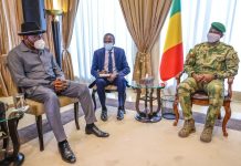 عقد رئيس المجلس العسكري الحاكم في مالي، العقيد عاصيمي غويتا، اليوم الجمعة، جلسة مباحثات مع بعثة من المجموعة الاقتصادية لدول غرب أفريقيا، برئاسة الرئيس النيجيري السابق جودلاك جوناثان،