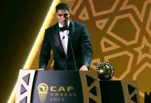 توج اللاعب المغربي أشرف حكيمي مساء اليوم في الرباط بجائزة الكرة الذهبية الإفريقية 2025 بعد موسم استثنائي مع باريس سان جرمان وتألقه مع المنتخب المغربي، متقدماً على المصري محمد صلاح والنيجيري فيكتور أوسيمهين.