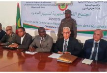 عقدت اللجنة الوطنية لتسيير الحدود اليوم الأحد في مدينة العيون عاصمة ولاية الحوض الغربي، اجتماعا حضرته السلطات الإدارية، وحكام المقاطعات الحدودية، وعمد بلدياتها، وقادة الوحدات الأمنية، إضافة لممثلين عن القرى المتاخمة للحدود مع مالي.