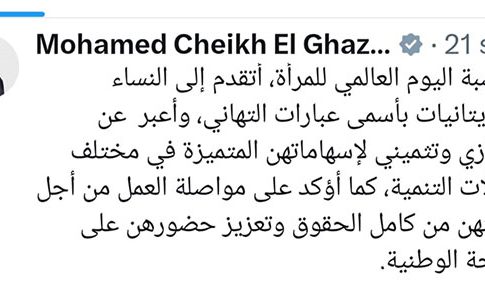 وقال الرئيس محمد ولد الشيخ الغزواني في تغريدة على حسابه في منصة «أكس» إنه «يعتز ويثمن الإسهامات المتميزة للنساء في مختلف مجالات التنمية».