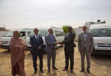 سلم الأمين العام للمندوبية العامة للتضامن الوطني ومكافحة الإقصاء (تآزر)، أنوي ولد الشيخ، للأمين العام لوزارة العمل الاجتماعي والطفولة والأسرة، حمودي شيخنا عالي، اليوم الاثنين، أربع حافلات ومساعدات غذائية، مقدمة هبة من المندوبية العامة لتآزر، لصالح مركز التكوين والترقية الاجتماعية للأطفال ذوي الإعاقة، وذلك في مدرسة المكفوفين بنواكشوط الغربية.