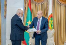استقبل الرئيس محمد ولد الشيخ الغزواني اليوم الثلاثاء حم سلاما، رئيس المجلس الوطني الصحراوي والمبعوث الخاص للرئيس الصحراوي إبراهيم غالي، في القصر الرئاسي بنواكشوط.