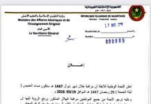 وأوضحت اللجنة أنها ستعقد، مساء الخميس، اجتماعها المركزي بمباني وزارة الشؤون الإسلامية والتعليم الأصلي في نواكشوط، حيث ستتولى تحري الهلال واستقبال شهادات المواطنين، إضافة إلى التنسيق مع اللجان الجهوية التي ستجتمع بالتزامن في مختلف ولايات البلاد.
