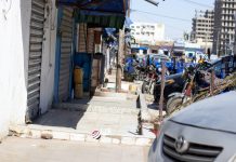 وأغلق التجار محلاتهم احتجاجا على شروع السلطات في بناء أرصفة إسمنتية في محيط السوق، وهو ما يقول التجار إنه سيعرقل حركة المرور بالسوق ويؤثر على وصول الزبائن إليهم.