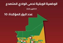 ففي جديد الوضعية الصحية ،قالت وزارة التنمية الحيوانية، إن موريتانيا تواجه حاليا موجة من وباء حمى الوادي المتصدع، بعد تسجيل أول بؤرة يوم 15 سبتمبر 2025 في قرية الشام التابعة لبلدية دار البركه بمقاطعة بوكي، ولاية لبراكنه.