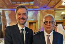 عقد وزير الشؤون الاقتصادية والتنمية الموريتاني عبد الله سليمان الشيخ سيديا، لقاء مع ألفارو لاريو، رئيس الصندوق الدولي للتنمية الزراعية.