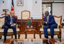 بحث الرئيس الموريتاني، رئيس الاتحاد الإفريقي محمد ولد الشيخ الغزواني، مع الرئيس الكيني ويليام ساموي روتو، العلاقات الثنائية بين البلدين، وسبل تطويرها، وبعض القضايا الإفريقية، والدولية.