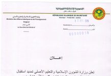 قالت وزارة الشؤون الإسلامية والتعليم الأصلي، إنها مددت الفترة الزمنية لاستقبال ملفات المترشحين لمسابقة جائزة رئيس الجمهورية لحفظ وفهم المتون المحظرية.