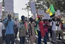 خرجت في العاصمة السنغالية داكار، أمس، مسيرة احتجاجية حاشدة رفع خلالها المتظاهرون شعارات تطالب بتحقيق العدالة في قضية وفاة الطالب الجامعي عبدولاي با.
