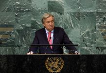 ودعا غوتيريش في كلمته خلال افتتاح دورة الجمعية العامة، إلى ضرورة قيام تحالف عالمي عاجل يركز تحقيق السلام، ومواجهة التغير المناخي والتوقف عن استخدام الوقود الأحفوري، والعمل من أجل تحقيق أهداف التنمية المستدامة.